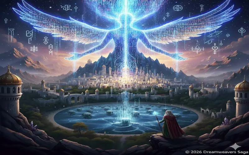 Ele engatinhou. Sua forma energética foi se erguendo sobre duas pernas, curvada a princípio, até ficar ereta e ganhar contornos humanos. Ouviu lamentos, sentiu angústia e tateou a umidade da escadaria. Viu-se como um esboço prateado, semelhante à silhueta que o guiava, mas ainda sem asas.